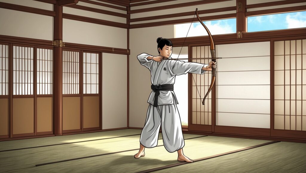 - Strength and Coordination: Drawing a yumi requires significant upper body strength, and maintaining balance enhances coordination.