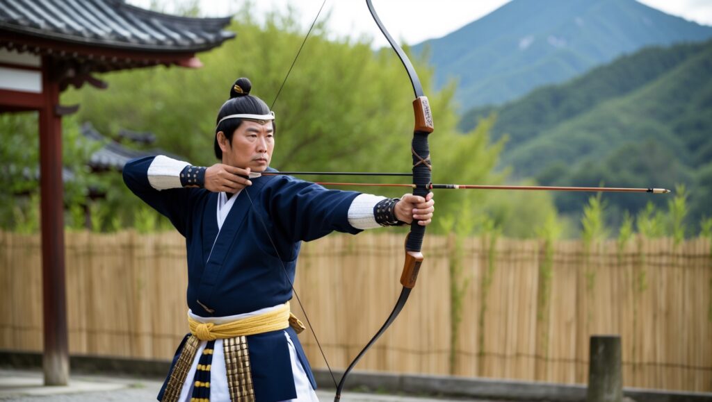 Kyudo, or Japanese archery, was once a crucial military skill and has evolved into a spiritual discipline. The asymmetrical yumi (bow) was used by mounted and foot soldiers alike, requiring skill and control. Samurai practiced Kyudo as both a combat skill and a form of meditation, focusing on inner calm, balance, and clarity of mind.